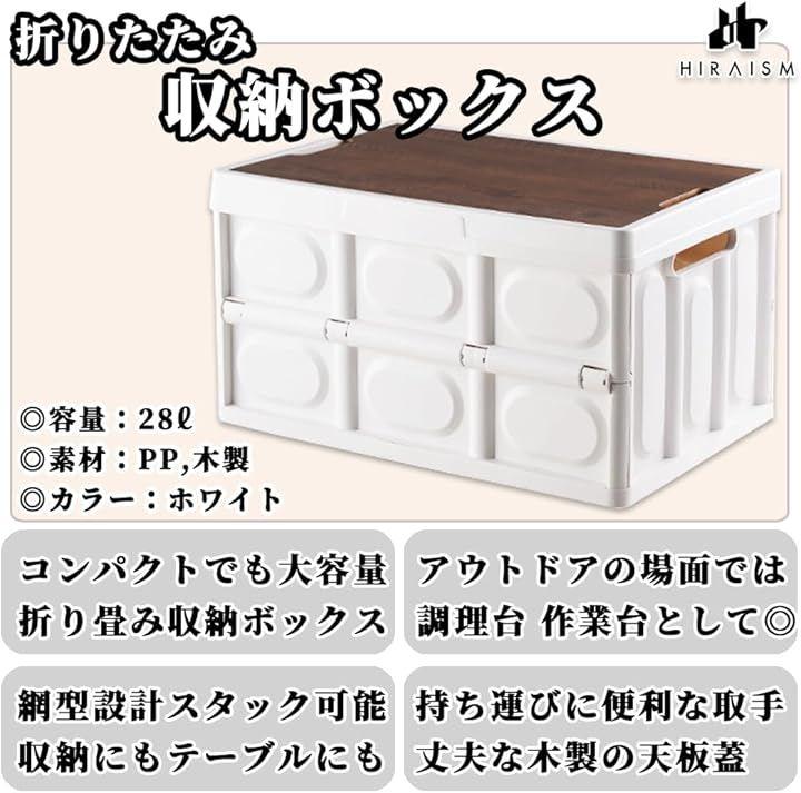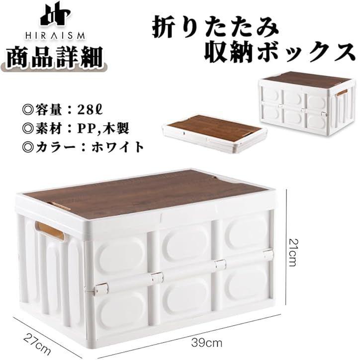 「商品内容」折りたたみ収納ボックス 素材:PP、木製 カラー:ホワイト サイズ:幅39cm 奥行27cm 高さ21cm(折畳み時7cm) 容量:28L
