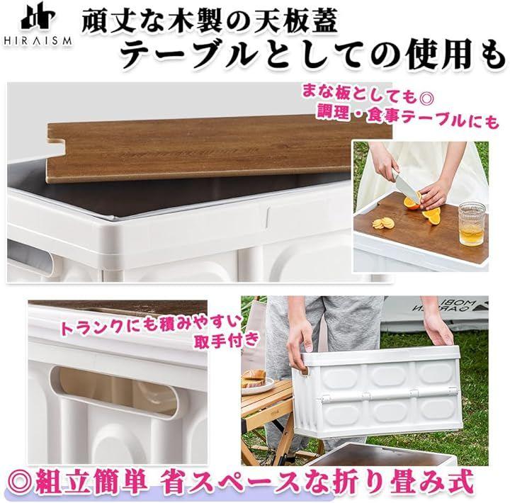 木蓋付きでアウトドア時の調理台や作業台としても、室内のおしゃれな収納スペースとしても大活躍。