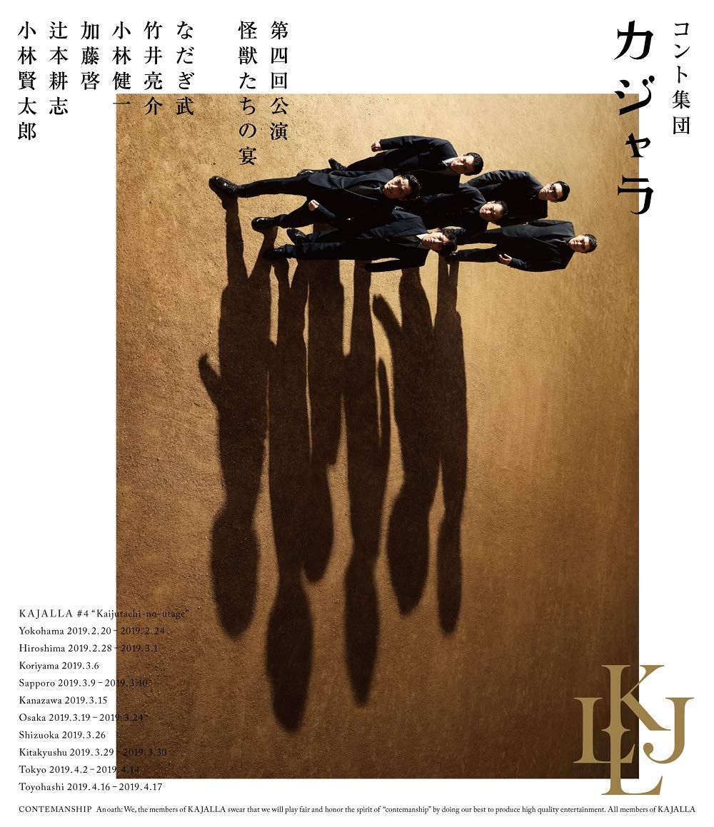 [内容解説] 小林賢太郎が作・演出を担当するコント集団カジャラ 第4回公演「怪獣たちの宴」を映像化! 宣誓 我々KAJALLA一同は、コントマンシップにのっとり 正々堂々と上質なコントを追求することを誓います。 KAJALLA一同 【収録作品】 「カジャラさん」「焼肉屋」「在宅超人スウェットマン」「フランケン/お父様! ?/ポセイドン /二宮金次郎/アメリカン兄弟」 「地球よ」「ニンゲン」「プレゼンテーション」「メキシカン漫 談」「怪獣たちの宴」 [スタッフキャスト] 作・演出:小林賢太郎 出演:なだぎ武 竹井亮介 小林健一 加藤啓 辻本耕志 小林賢太郎 衣裳:伊賀大介 音楽:徳澤青弦 歌:西寺郷太 幕間ステージング:平原慎太郎 宣伝美術:good design company 表紙写真:鈴木心 表紙ヘアメイク:YUUK(W) 舞台映像:松永ホマレ 企画・制作著作:スタジオコンテナ [発売元] TBSラジオ [クレジット表記] (C)2019 studio Contena