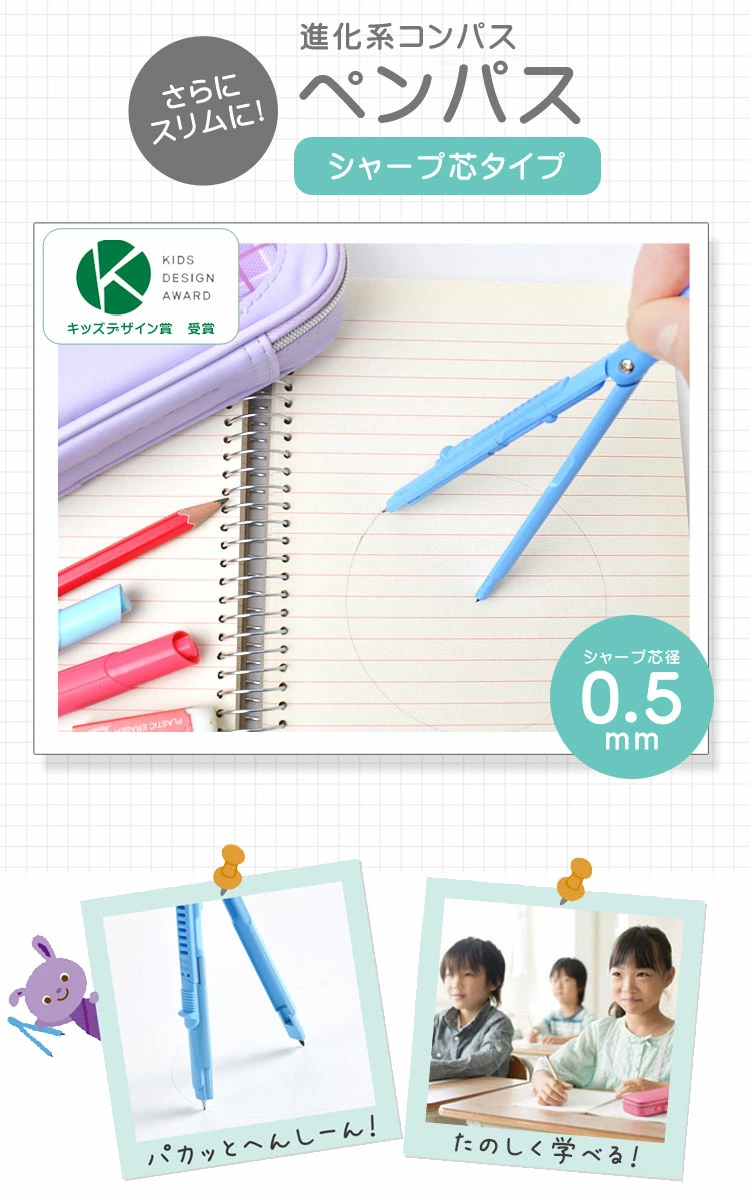 【ペンパス】進化系コンパス「ペンパス」「ペン型タイプのスリムなコンパス」ペンパス(シャープタイプ)が「第13回キッズデザイン賞」を受賞