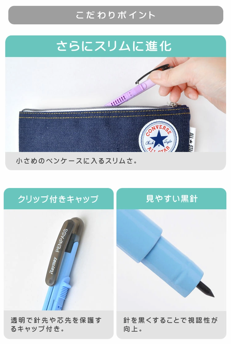 2008年の発売以来、ベストセラー商品である「ペンパス シャープタイプ」を、ペンケースに入るスリムなペンタイプの形状はそのままに、新たな機能を追加してさらに使いやすくリニューアルしました。市販の0.5mmシャープペンシル芯を使うことができるため、お手持ちの替芯やカラーの替芯等を使っての描円が可能。紙上で視認性の高い黒針を採用しています。針や芯先を守って携帯に便利なキャップ付きです。