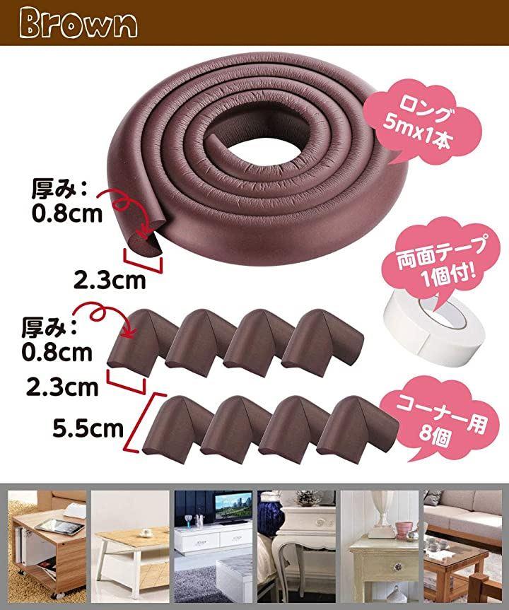 コーナークッション:5mx2.3cmx0.8cm,コーナーガード:5.5cmx2.3cmx0.8cm、邪魔にならずクッション性のある最適サイズになっています。