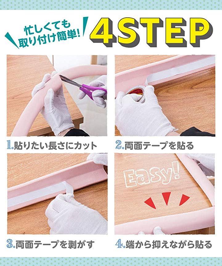 はさみやカッターでも切れますので簡単に長さ調整をすることができ、付属の両面テープですぐに取付可能です。