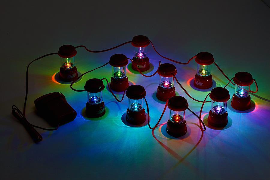 見るたびに光の色が変化する、楽しいデコレーションライト。10個のランタン型LEDライトでテントサイトを楽しくデコレーションできるオーナメントライト。サイズ:約直径4×7(h)cm×10個、コード/約2.8m重量:約290g連続点灯時間:約24時間使用電源:アルカリ単三形乾電池×3本(別売)使用バルブ:LED性能:時間経過で徐々に色の変わるLEDを使用材質:ABS樹脂、他防水性能:IPX4対応