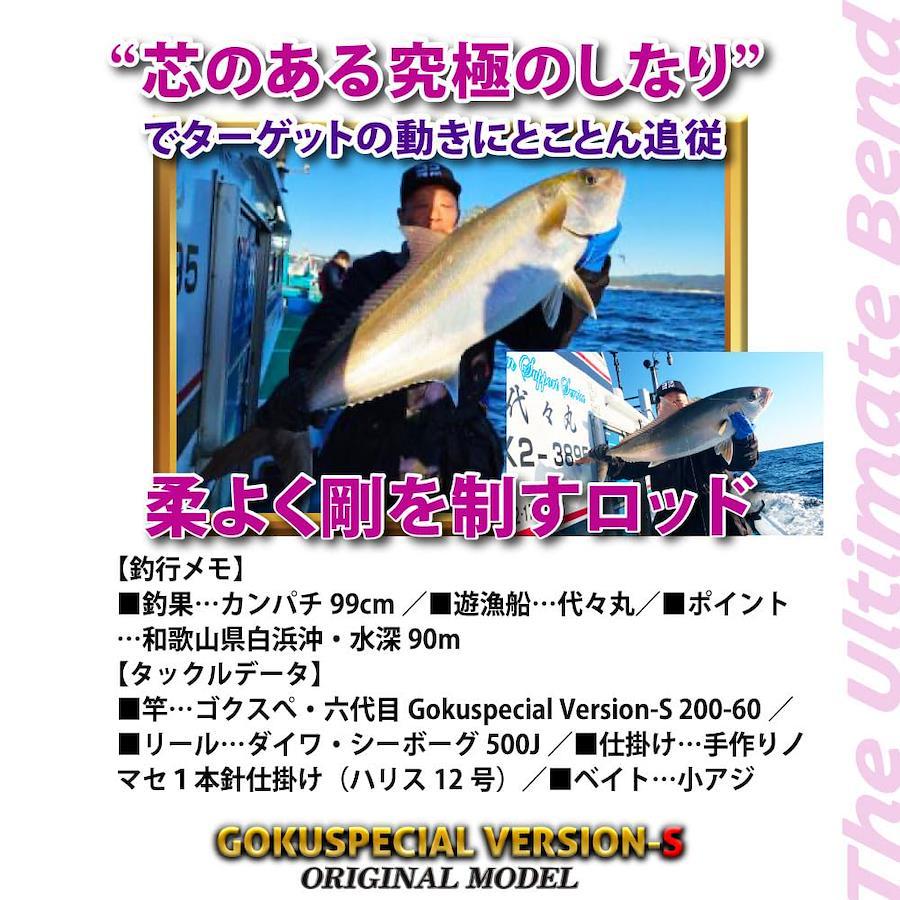 【ORIGINAL MODEL】グラスソリッド総糸巻き仕様で長弓のような独自の曲がりと粘りを実現。それを多くの釣り人に体感してほしいという、ゴクスぺの思いを具現化したロッドです。初代から約20年の歳月を経て洗練された「6代目バージョンS」の性能をぜひご体感ください。