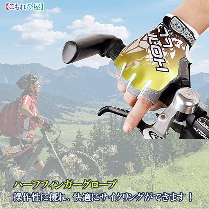 ハーフフィンガーグローブ:指先がフリーになっているので、操作性に優れ、快適にサイクリングができます。