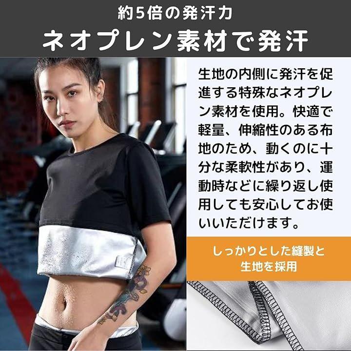 用途:この女性用サウナスーツ上下セット(半袖Tシャツ+7分丈レギンススパッツ)は、全身の熱を維持し、体の発汗を促進するサウナ効果があります。