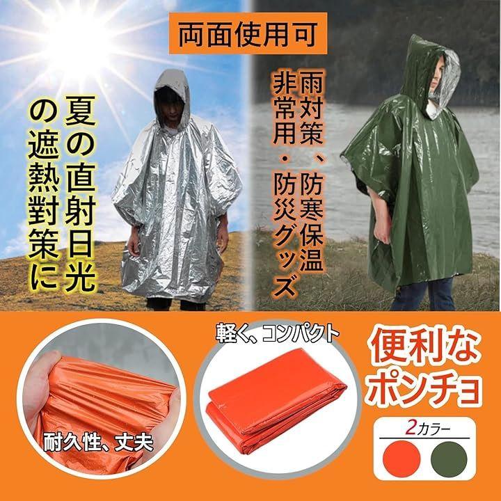 「内容」 サバイバルシートポンチョ オレンジ色 1個 素材 ポリエチレン + 携帯トイレ小便用 4回分 素材 ポリエチレン