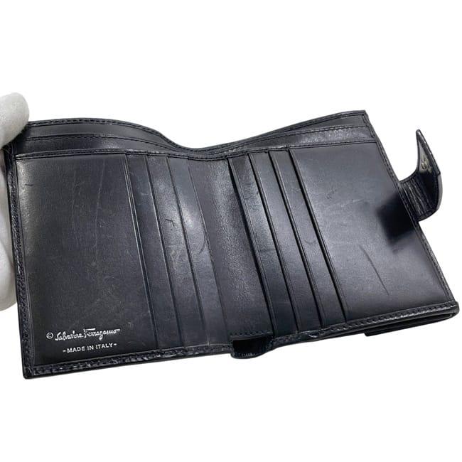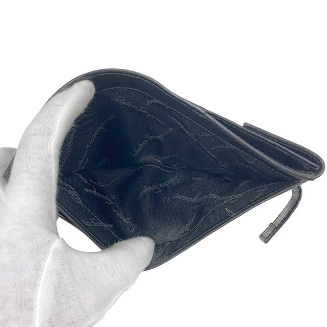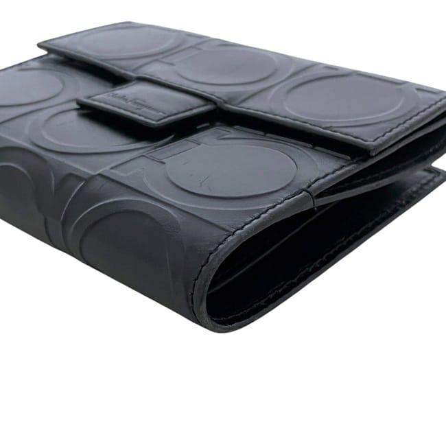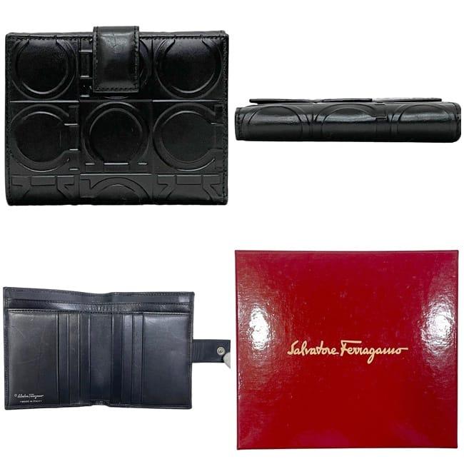 ☆---- 商品について ----☆サルヴァトーレフェラガモ 二つ折り 財布 ec-24570 ブラック ガンチーニ AQ-22 0791 Wホック 美品 レザー 中古 Salvatore Ferragamo ロゴ 黒 総柄 エンボスロゴ ヴィンテージ ダブルホック コンパクト 箱付き シンプル メンズ レディース ブランド 本物 鑑定済