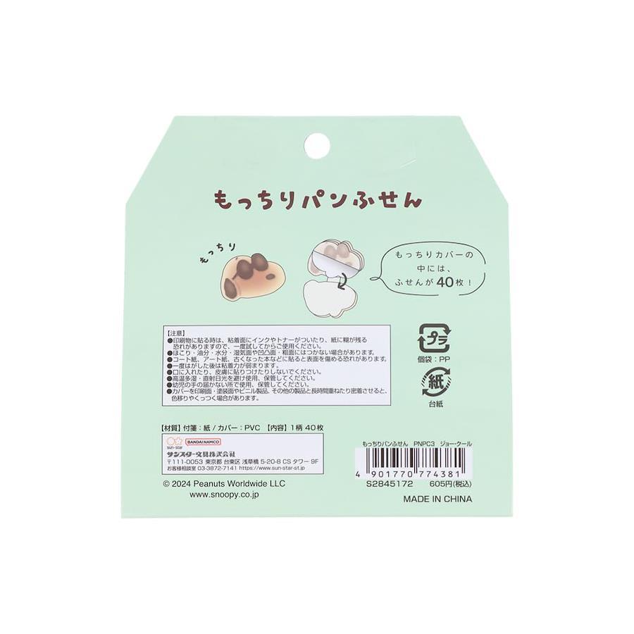 スヌーピーの文具雑貨シリーズ!もっちりパンふせんもっちりふわふわしたカバーがついたスヌーピーのダイカット付箋こんがり焼けたパン風デザインの付箋パッケージに入った姿はまるで本物のパンみたい![もっちりパンふせん]シリーズにスヌーピーデザインが登場!