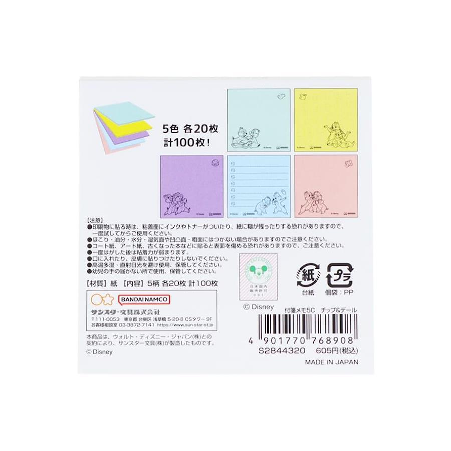 キャラクターが可愛い付箋メモ付箋メモ5C好きな柄から使える大人気の付箋メモ、[付箋メモ5C]。 柄は、チップ&デール。ディズニー/ピクサーのキャラクターがかわいいデザインで勢ぞろい!学校や会社のデスク周りを彩ります!パステルカラーが可愛い5色セット。
