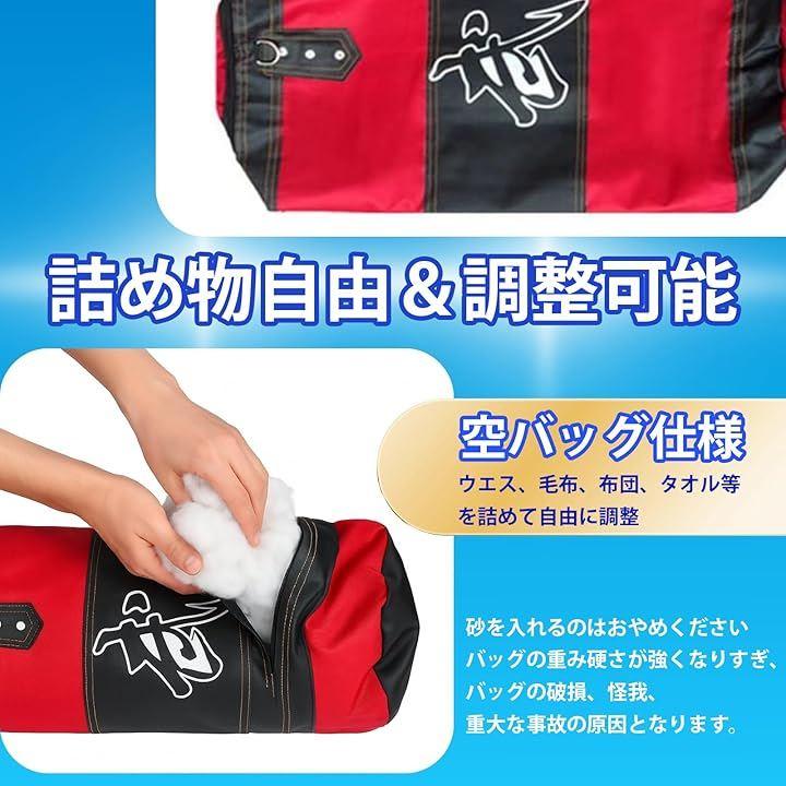 空袋タイプなので、お好みの詰め物材料で重さを調整することができ、練習スタイルに合わせてカスタマイズ可能です。