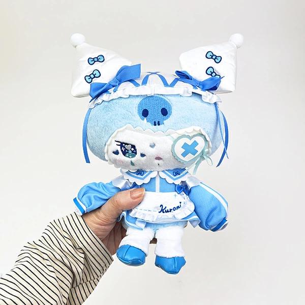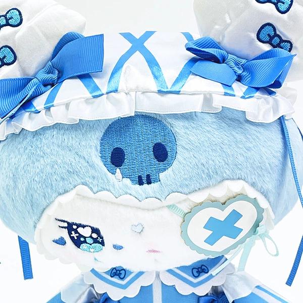 スポーティーとガーリーがミックスされたコーデがカワイイ、ドーリーミックスです。ブルーでぴえんな表情がメロい♪両手サイズなので飾っても一緒にお出かけしても◎