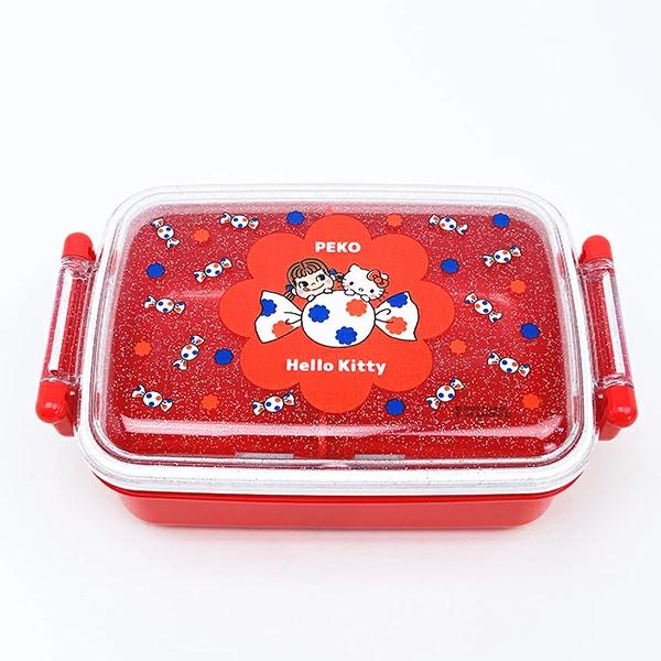 ペコちゃん×ハローキティのおかずがつぶれにくいふわっとフタタイトランチボックスです。ドーム型のフタで、"ふんわり"とご飯やおかずを盛りつけておいしさUP♪のり等がフタにくっつきにくく、押し潰れを防ぎます♪おかずが片寄りにくい高い仕切り&入れ分けに便利な中子付きで、用途に合わせて使い分けができて使い勝手◎なかよしなペコちゃん&キティちゃんのデザインが可愛すぎます☆彡食洗機・フタを外して電子レンジ使用可◎【容量:450ml】