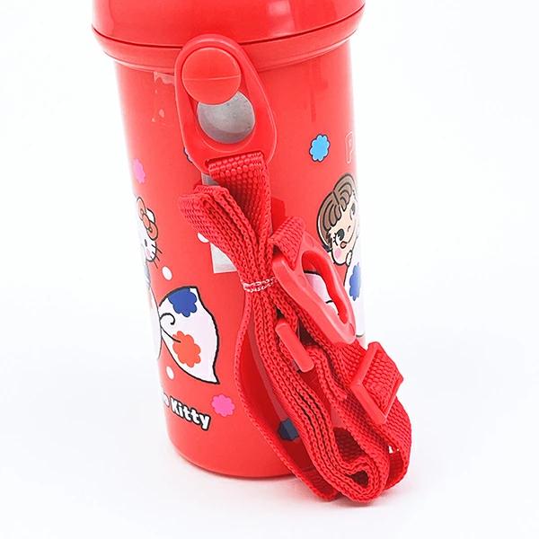 ペコちゃん×ハローキティのプラスチック直飲みワンタッチボトルです。本体は氷が入れやすい広口タイプ。プッシュ式オープンで小さいお子様でも簡単オープン♪軽くて持ちやすく、肩にかけて持ち運べるショルダーベルト付なので保育園・幼稚園や公園などに持って行くのにぴったり☆名前シール入りが嬉しいポイント!なかよしなペコちゃん&キティちゃんのデザインが可愛すぎます☆彡食洗機使用可◎【容量:480ml】