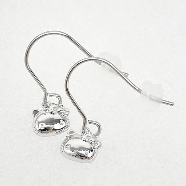 ハローキティのアレルギーフリーフックピアスです。小さめなキティちゃんのフェイスデザインがとってもキュート♪シンプルなデザインなのでどなたでも使いやすく、長く楽しんでいただけるアクセサリーです♪専用のBOX付きなので大切な方へのプレゼントにもおすすめです☆彡直接耳にあたる金具に「サージカルステンレス」を使用しているので、金属アレルギーの方にも安心!手術のメスにも使用される変形しにくく高い耐久性の素材を使うことでシリコンキャッチも付属しておりますので、落脱も防止。選べる3つのカラーでお届けします。※金属アレルギーに関して状況により100%保証するものではありません。ご留意ください。