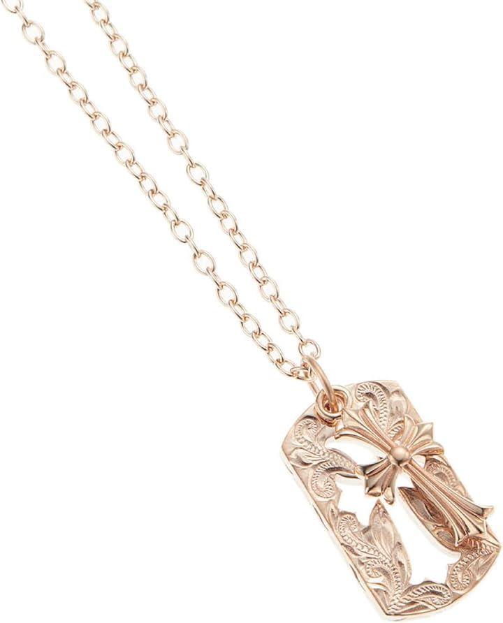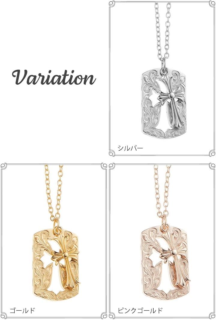 チェーン長さ S:約45cm(40cmに調節可能) L:約50cm(45cmに調節可能) チェーン太さ:約2.5mm 繊細なハワイアン柄がほどこされたドッグタグ型のプレートとクロスチャームが重なったネックレスです。