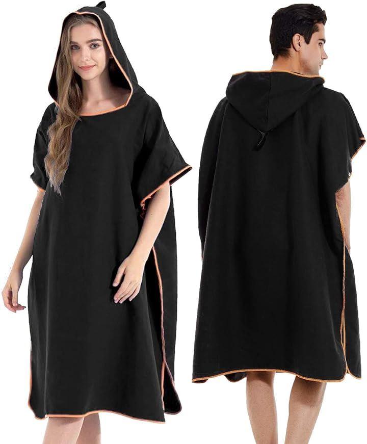 サーフィン ポンチョ お着替え ラップタオル 大人用 サウナ バスローブ レディース メンズ マイクロファイバー ブラック