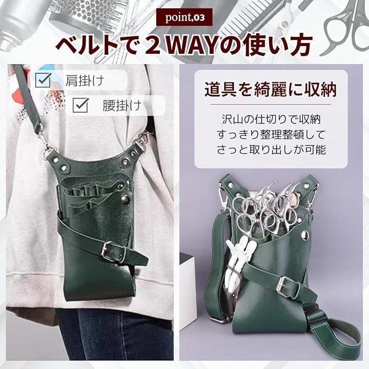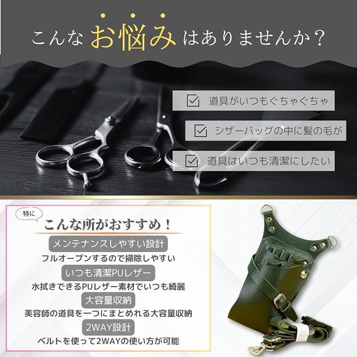 「機能」ハサミだけではなく、くしやコームも指せる多機能な収納箇所もあり、これ一つで使いできるデザインとなっております。