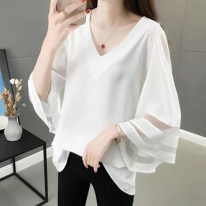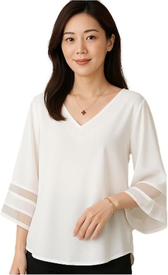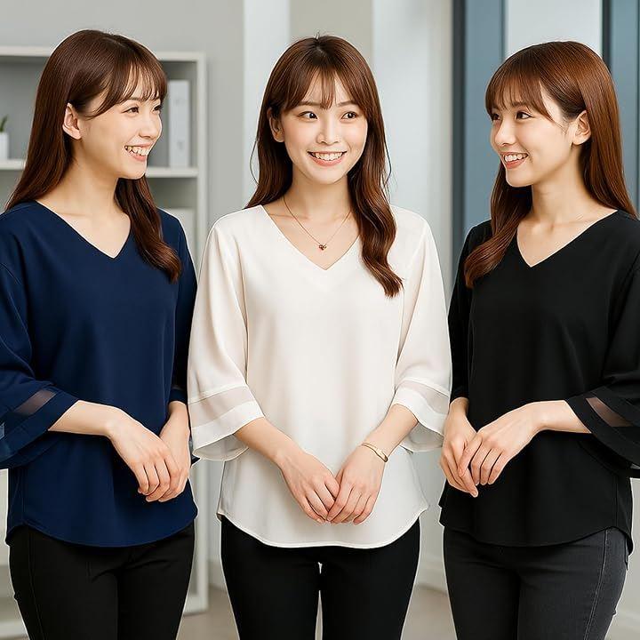 「抜け感たっぷりのVネック」顔まわりをすっきり見せるVカットで、小顔効果&首元を美しく演出。