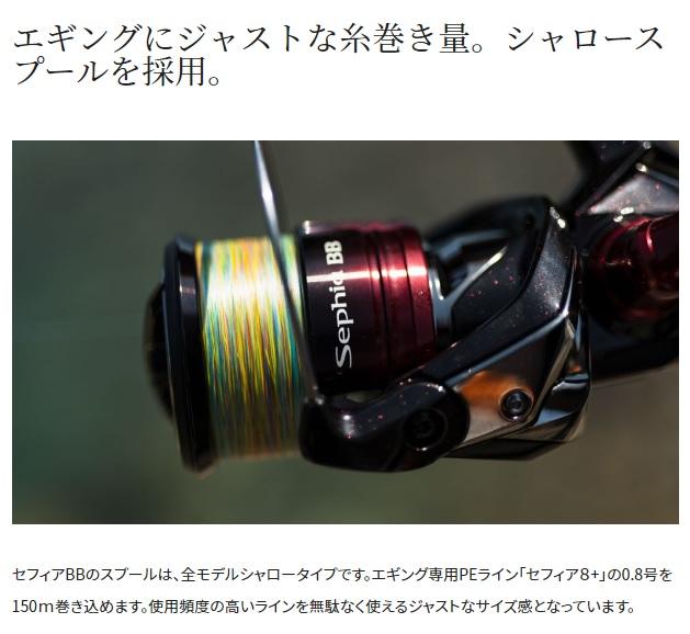 エギング専用設計ハイコストパフォーマンスリール。シャロースプール、ラピッドファイアドラグ、EVAハンドルノブ、ダブルハンドルモデルといったスタンダードなエギングにぴったりの仕様。 マイクロモジュールギア2、サイレントドライブ、Xプロテクト、ロングストロークスプールといった充実の機能を搭載し、フィーリング、防水性能、飛距離といった基本性能が大幅に向上しました。さらに、CI4+ボディ採用により前作から大幅に軽量化。セフィアの名にふさわしい実釣性能を誇るハイコストパフォーマンスリールの決定版。 ギア比:5.3 実用ドラグ力:3.5kg 最大ドラグ力:9kg 自重:235g スプール径/ストローク:47mm/17mm 糸巻量PE(号-m):0.6-200,0.8-150,1-120 最大巻上長:78cm/ハンドル1回転 ハンドル長さ:45mm ベアリング数BB/ローラー:5/1 夢屋ハンドルノブタイプ:A 夢屋ハンドルタイプ:H-11 夢屋ハンドルスクリューキャップタイプ:HC-2 夢屋リールスタンドタイプ:C ※実物と色が違って見える場合があります。あらかじめご了承下さい。