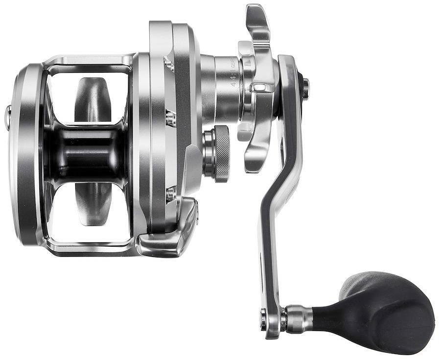 ジギング用ベイトリールの王道・オシアジガーに、深海や離島の大物に対応する4000番が新登場。コンセプトは「コンパクト&高ラインキャパシティ」。PE3号×1200mの糸巻量を誇りながらも、パーミングサイドの外径を小径化することでホールド性も両立。カンパチ、アブラボウズ、ベニアコウなどディープゾーンのターゲットを射程に収めます。もちろん、ジガー伝統の堅牢な造りと滑らかな巻き上げ性能は余さず継承。さらに大径スタードラグの搭載で、より細やかなドラグ調整が可能になりました。オシアジガーFカスタム2000番のフォールレバー(別売7,150円)も装着可能です。