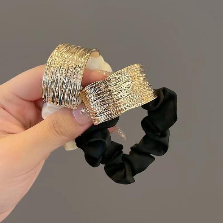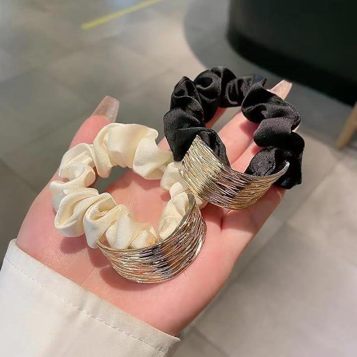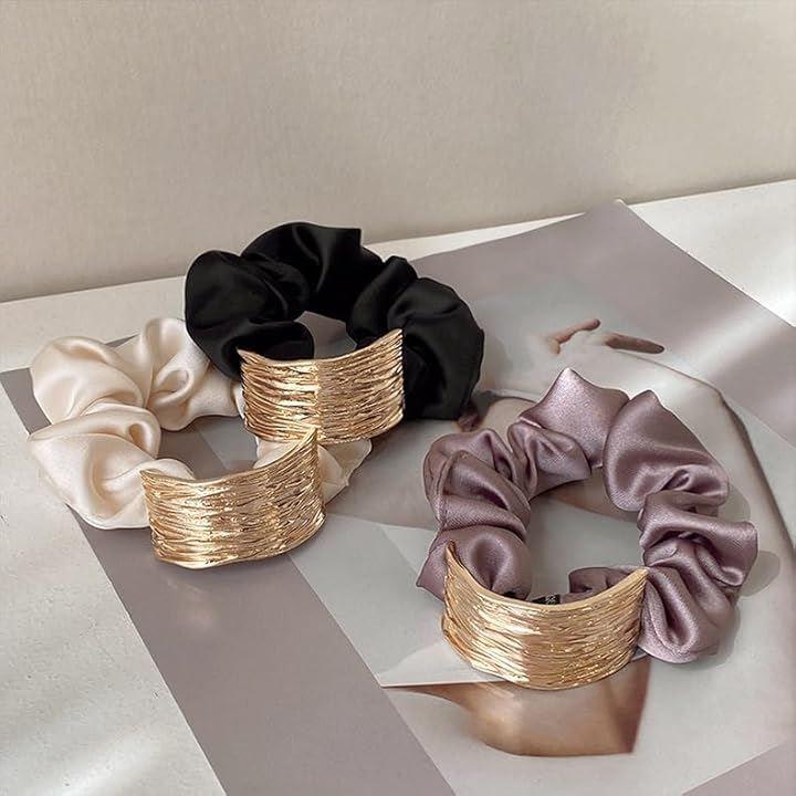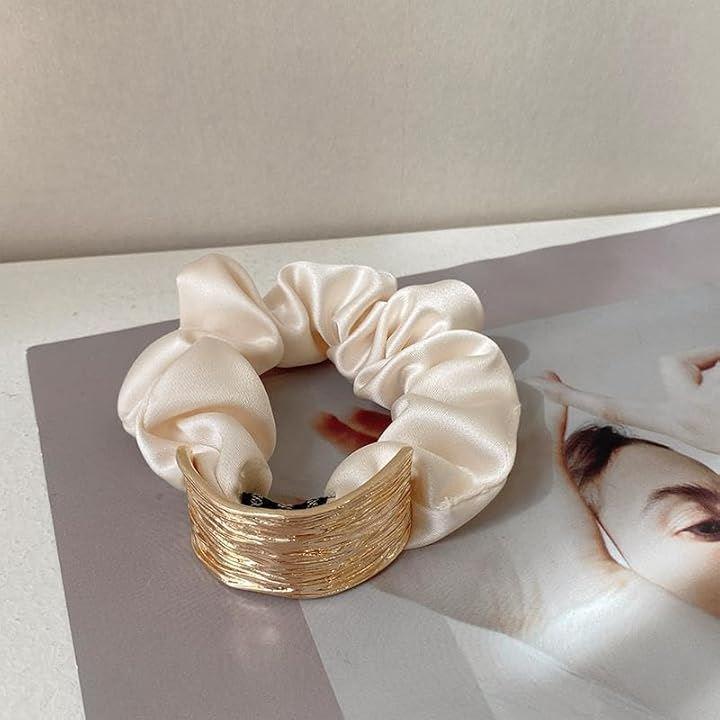 定番のシュシュも女性らしい光沢のあるサテン生地で、ぐっとエレガントな印象に。