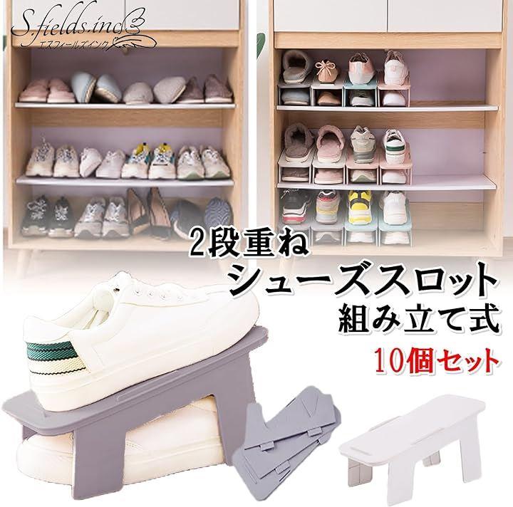 10個セットになっており、合計10足分のスニーカーやシューズが今までより場所を取らず、靴の整理を簡単に行うことができ、下駄箱内やクローゼット内などのスペースを最大限に活用することができます。
