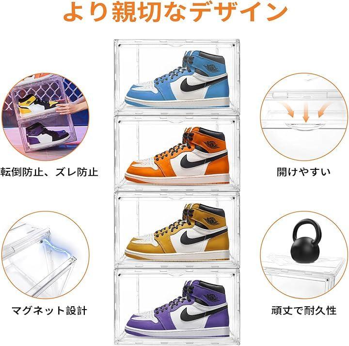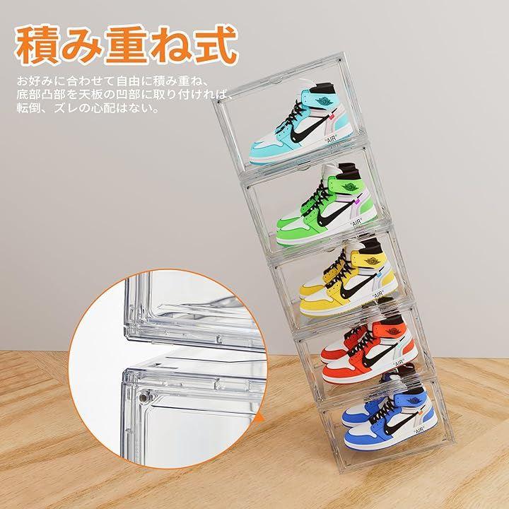 「高透明度」靴箱は透明度が高く、厚みのあるアクリル素材で作られ、全面クリアであらゆる角度から靴をはっきりと表示できます。