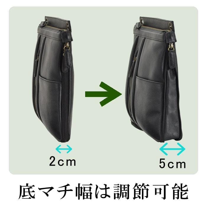 ◆ シボ加工されたソフトな牛革を使用した薄マチのショルダーバッグ。◆ 簡単に底マチの調整ができ、収納力も自由自在に。◆ 内部、外部問わず多数の小物ポケットを備えています。◆ 機能的ながらアンティーク金具などデザインにもこだわった逸品。