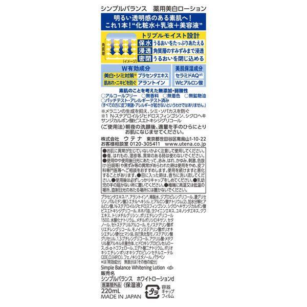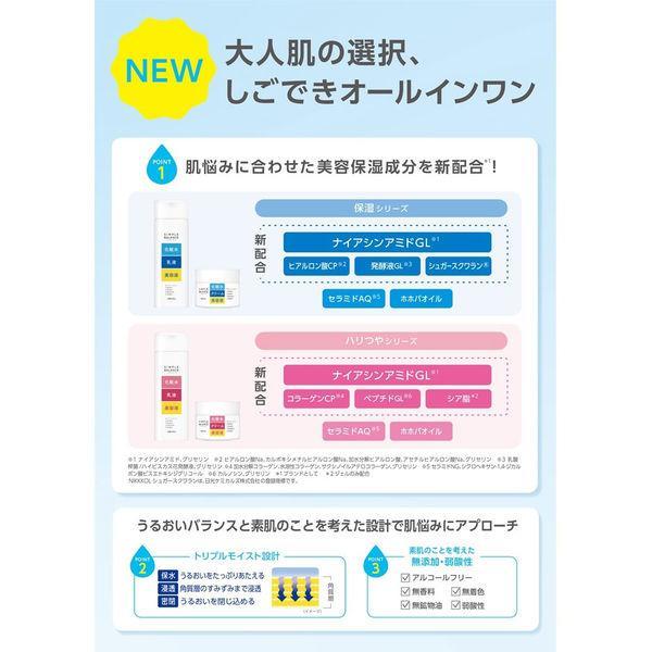 これ1本!「化粧水+乳液+美容液」。オールインワンローション。肌あれ・ニキビ予防にも!●トリプルモイスト設計。・保水:うるおいをたっぷりあたえる。・浸透:角質層のすみずみまで浸透。・密閉:うるおいを閉じ込める。●W有效成分配合。・美白、シミ対策(※):プラセンタエキス(※メラニンの生成を抑え、シミ・ソバカスを防ぐ)・肌あれ、ニキビを防ぐ:アラントイン●美肌保湿成分:セラミドAQ(※)・Wヒアルロン酸。(※N-ステアロイルジヒドロスフィンゴシン、シクロヘキサンジカルボン酸ビスエトキシジグリコール)●素肌のことを考えた無添加・弱酸性。アルコールフリー・無香料・無着色・無鉱物油。●パッチテスト・アレルギーテスト済み。(※すべての方に皮フ刺激・アレルギーが起きないというわけではありません。)
