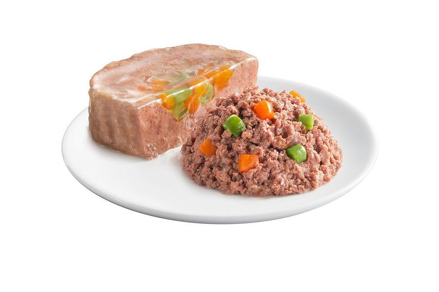 肉類(ラム、ビーフ、チキン等)、野菜類(にんじん、いんげん)、米、ひまわり油、食物繊維、たまご、マリーゴールド、アルファルファ、トマトパウダー、ビタミン類(B1、B5、B6、B12、C、D3、E、コリン、葉酸)、ミネラル類(Ca、Cl、Cu、I、K、Mn、P、Zn)、アミノ酸類(グリシン、タウリン、メチオニン)、増粘多糖類、リン酸塩(Na)