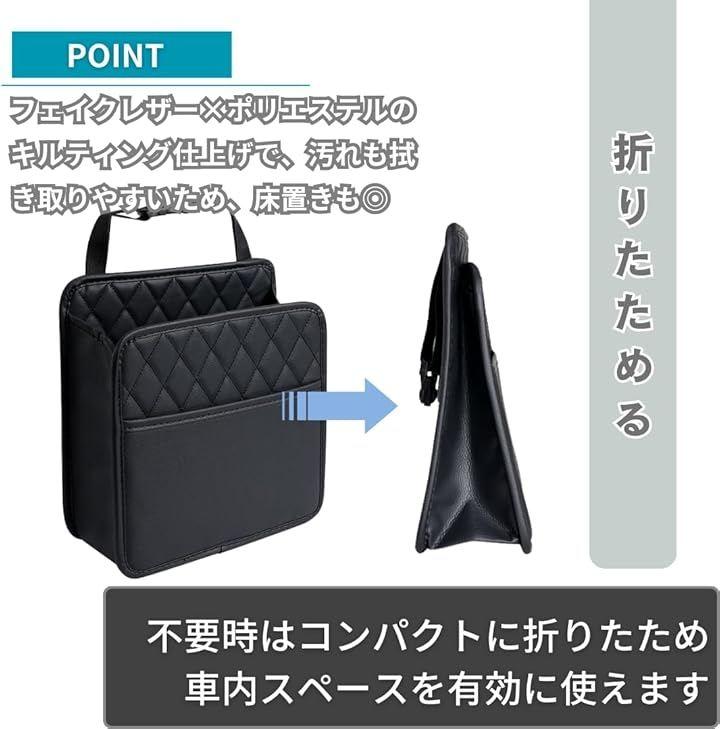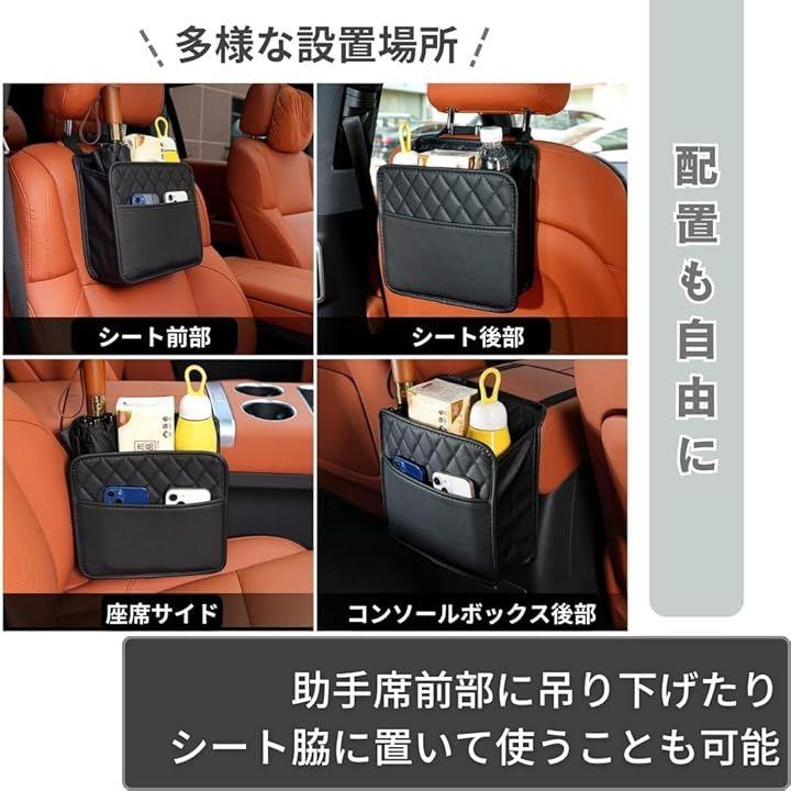 後部座席だけでなく、助手席前部に吊り下げたり、シート脇に置いて使うことも可能です。