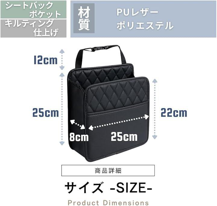 「商品内容」サイズ(約):縦幅25cm、横幅25cm、マチ8cm、吊り下げベルト長さ12cm 主な材質:PUレザー、PET *サイズ詳細は商品画像をご確認ください。