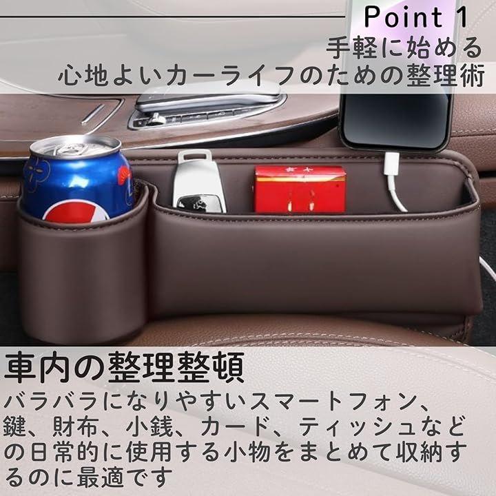 スマホ、鍵、財布、ティッシュなど日常的に使用する小物をスッキリ収納できる車用アイテムです。