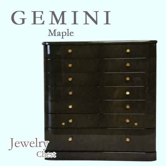 バーズアイメープル材の美しい杢目と輝きの有る艶出し塗装を施し、シンプル&エレガントに仕上げたジュエリーチェストです。見る角度により表情を変える天然木の風合いをお楽しみいただけます。