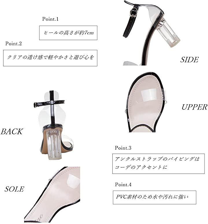 ・クリアバンドとクリアヒールの洗練されたデザインが美脚効果をより一層引き出します。