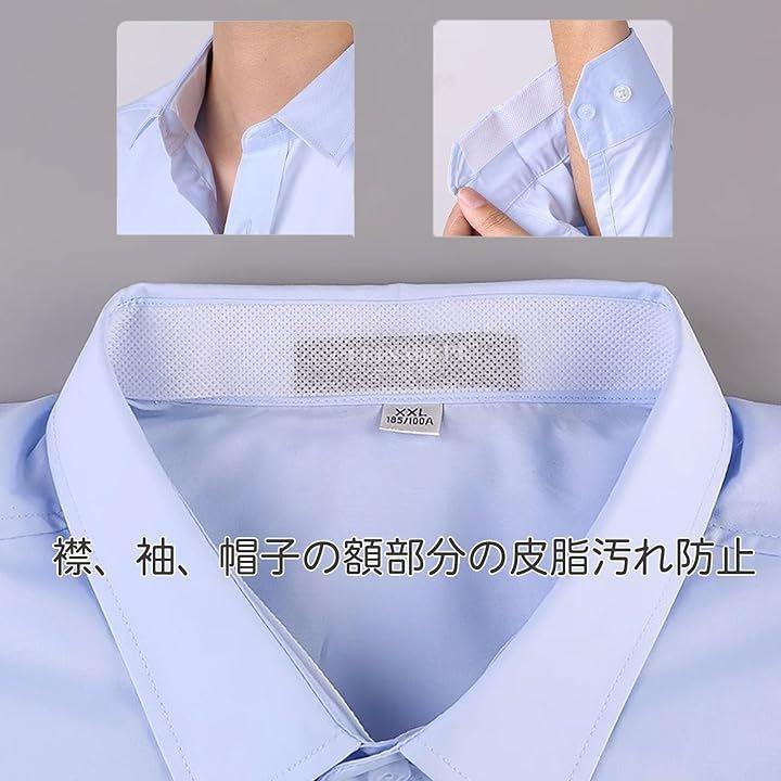 襟元はもちろん、袖回り、帽子やキャップの内側の汗、皮脂汚れ、化粧汚れなどからガードします