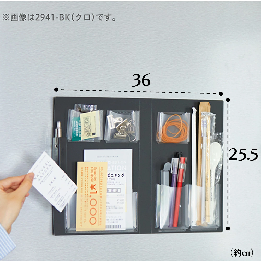 【商品情報】●冷蔵庫のドアをスッキリ整理!●どこにしまったかわからなくなりやすい小物を1つにまとめて収納●マグネットを貼りつけるだけ●表紙にも開いたまま維持するためのマグネット付き●インテリアになじむデザイン(表紙を閉じて生活感をすっきりと隠すことができます)●6つのポケットを見渡せて、使いたいものがすぐにみつかります●ペンを1本はさめるボックス●大きめに開くポケットで、細かいものも片手でもラクに取り出せる