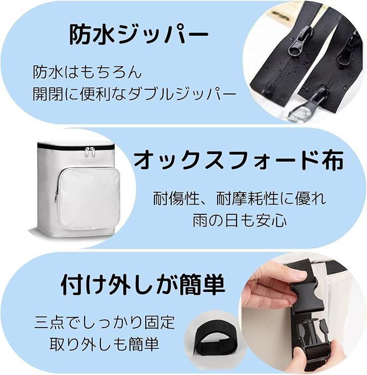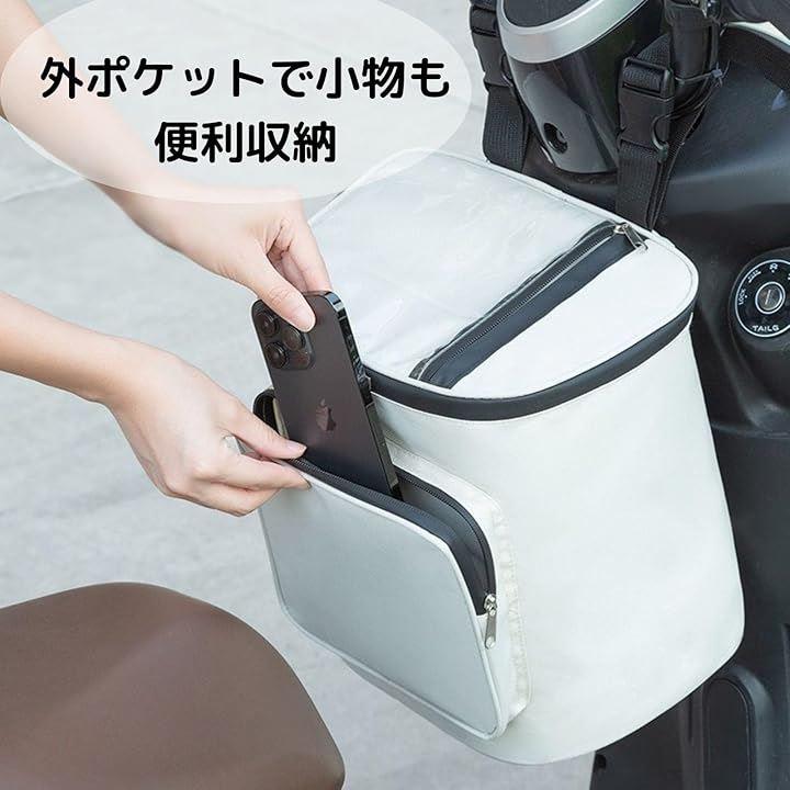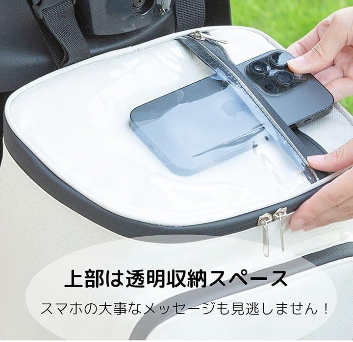 カラー:乳白色(防水ファスナー、携帯フィルム)、黒色(防水ファスナー、携帯フィルム)上部の携帯収納スペースにはスマートフォンを入れそのまま操作も可能、防水で水に濡れても安心。