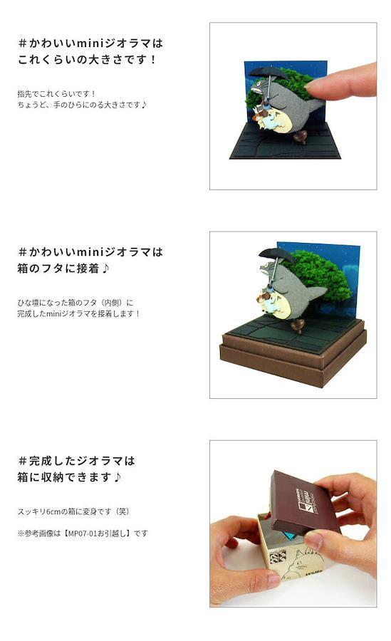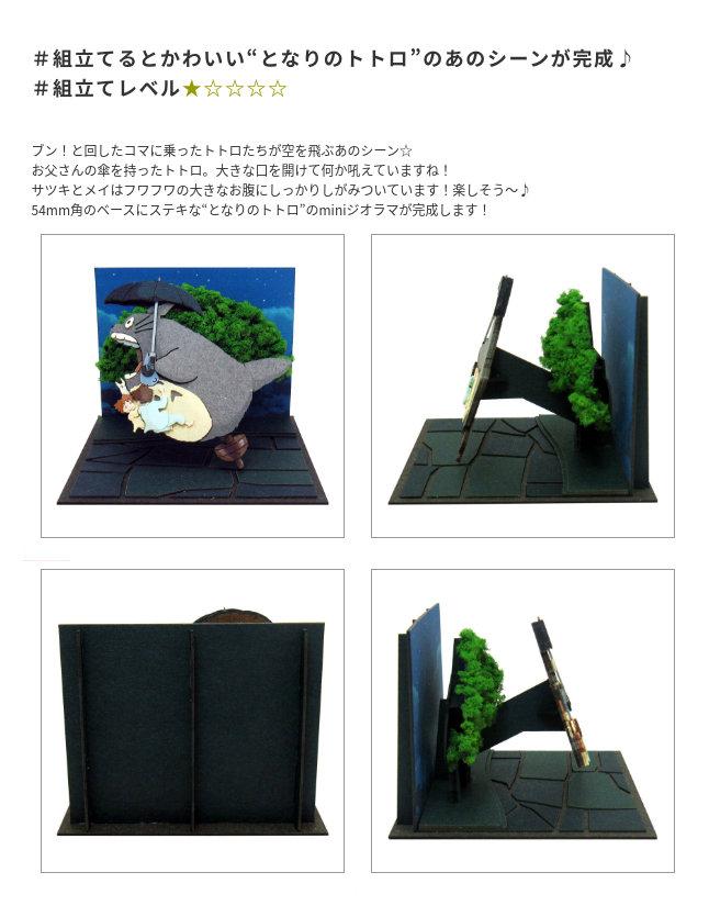 スタジオジブリminiは1辺6cmの箱の上に小さなジオラマが作れるペーパーキットです♪完成すると「となりのトトロ」の世界がコマ送りのようにお楽しみいただけます☆ ※こちらの商品は組立てペーパーキットです。完成品ではございませんのでご注意ください。■商品名 スタジオジブリmini となりのトトロ トトロと遊覧飛行■コピーライト © 1988 Studio Ghibli■セット内容 レーザーシートA~Q(17枚)、 ベース(1枚)、印刷シート(1枚)、スポンジ、 組み立て説明書■スケール Non-scale■サイズ W60×D60×H60(107)mm ※内はジオラマを乗せた時の寸法です■対象年齢 12才以上■組立て所要時間 2時間~■組立てレベル ★☆☆☆☆■みにちゅあーとキットとは? ミニチュア制作の経験のない方でも、扱いやすい“紙” 素材で出来たECOペーパーキットです。製作道具はカッターナイフ、ピンセット、接着剤、定規、カラーペンなどがあれば作れますよ~♪