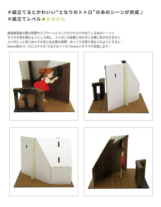 スタジオジブリminiは1辺6cmの箱の上に小さなジオラマが作れるペーパーキットです♪完成すると「となりのトトロ」の世界がコマ送りのようにお楽しみいただけます☆ ※こちらの商品は組立てペーパーキットです。完成品ではございませんのでご注意ください。■商品名 スタジオジブリmini となりのトトロ メイとマックロクロスケ■コピーライト © 1988 Studio Ghibli■セット内容 レーザーシートA~K(11枚)、ベース(1枚)、組み立て説明書■スケール Non-scale■サイズ W60×D60×H60(107)mm ※内はジオラマを乗せた時の寸法です■対象年齢 12才以上■組立て所要時間 2時間~■組立てレベル ★☆☆☆☆■みにちゅあーとキットとは? ミニチュア制作の経験のない方でも、扱いやすい“紙” 素材で出来たECOペーパーキットです。製作道具はカッターナイフ、ピンセット、接着剤、定規、カラーペンなどがあれば作れますよ~♪