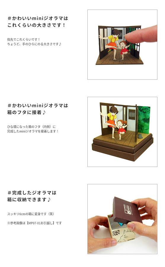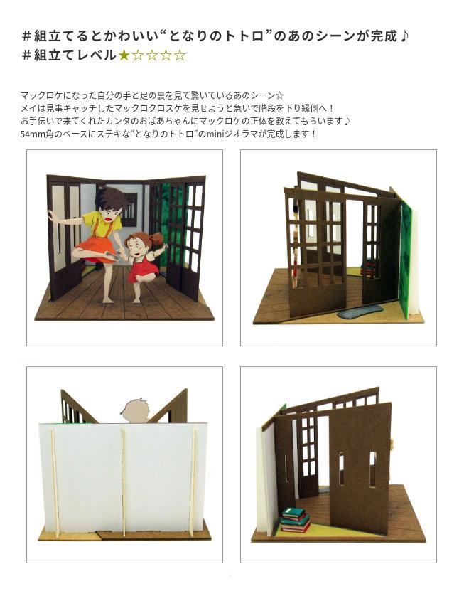 スタジオジブリminiは1辺6cmの箱の上に小さなジオラマが作れるペーパーキットです♪完成すると「となりのトトロ」の世界がコマ送りのようにお楽しみいただけます☆ ※こちらの商品は組立てペーパーキットです。完成品ではございませんのでご注意ください。■商品名 スタジオジブリmini となりのトトロ 手も足もマックロケ■コピーライト © 1988 Studio Ghibli■セット内容 レーザーシートA~P(16枚)、ベース(1枚)、印刷シート(2枚)、組み立て説明書■スケール Non-scale■サイズ W60×D60×H60(107)mm ※内はジオラマを乗せた時の寸法です■対象年齢 12才以上■組立て所要時間 2時間~■組立てレベル ★☆☆☆☆■みにちゅあーとキットとは? ミニチュア制作の経験のない方でも、扱いやすい“紙” 素材で出来たECOペーパーキットです。製作道具はカッターナイフ、ピンセット、接着剤、定規、カラーペンなどがあれば作れますよ~♪