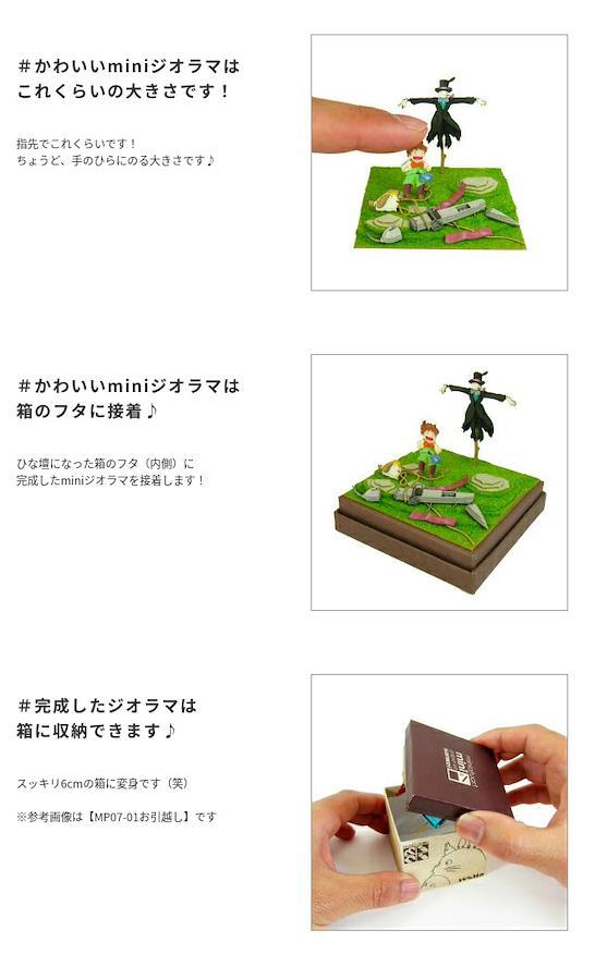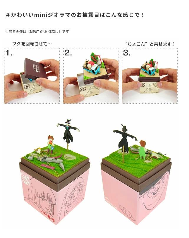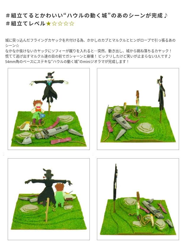 スタジオジブリminiは1辺6cmの箱の上に小さなジオラマが作れるペーパーキットです♪完成すると「ハウルの動く城」の世界がコマ送りのようにお楽しみいただけます☆ ※こちらの商品は組立てペーパーキットです。完成品ではございませんのでご注意ください。■商品名 スタジオジブリmini ハウルの動く城 かかしのカブとマルクルとヒン■コピーライト © 2004 Studio Ghibli - NDDMT■セット内容 レーザーシートA~P(16枚)、ベース(1枚)、パウダー、組み立て説明書■スケール Non-scale■サイズ W60×D60×H60(107)mm ※内はジオラマを乗せた時の寸法です■対象年齢 12才以上■組立て所要時間 2時間~■組立てレベル ★☆☆☆☆■みにちゅあーとキットとは? ミニチュア制作の経験のない方でも、扱いやすい“紙” 素材で出来たECOペーパーキットです。製作道具はカッターナイフ、ピンセット、接着剤、定規、カラーペンなどがあれば作れますよ~♪