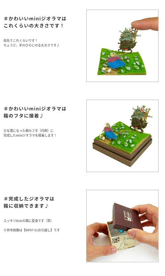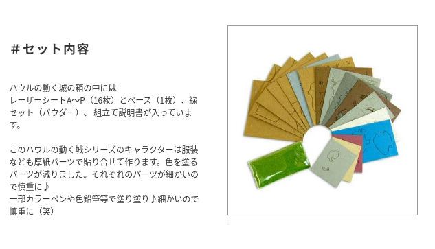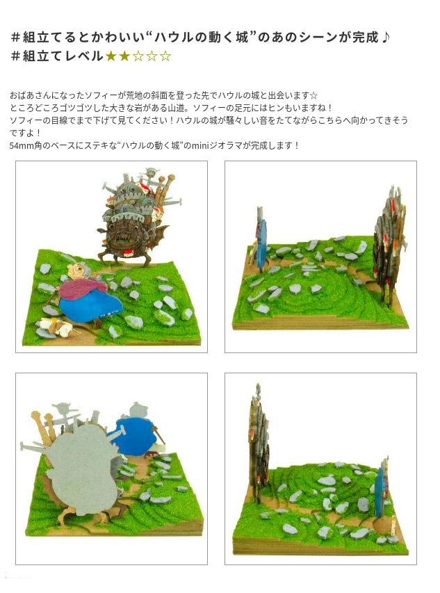 スタジオジブリminiは1辺6cmの箱の上に小さなジオラマが作れるペーパーキットです♪完成すると「ハウルの動く城」の世界がコマ送りのようにお楽しみいただけます☆ ※こちらの商品は組立てペーパーキットです。完成品ではございませんのでご注意ください。■商品名 スタジオジブリmini ハウルの動く城 ハウルの城とソフィー■コピーライト © 2004 Studio Ghibli - NDDMT■セット内容 レーザーシートA~P(16枚)、ベース(1枚)、パウダー、組み立て説明書■スケール Non-scale■サイズ W60×D60×H60(106)mm ※内はジオラマを乗せた時の寸法です■対象年齢 12才以上■組立て所要時間 2時間~■組立てレベル ★★☆☆☆■みにちゅあーとキットとは? ミニチュア制作の経験のない方でも、扱いやすい“紙” 素材で出来たECOペーパーキットです。製作道具はカッターナイフ、ピンセット、接着剤、定規、カラーペンなどがあれば作れますよ~♪