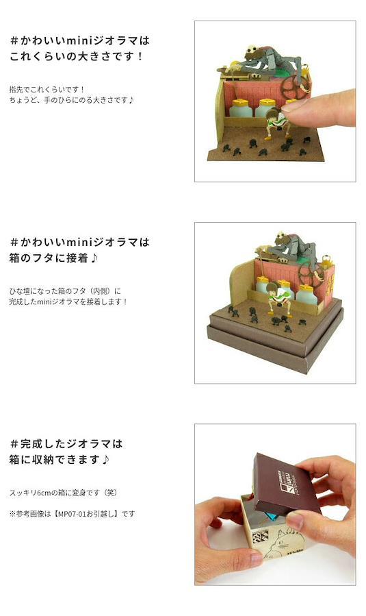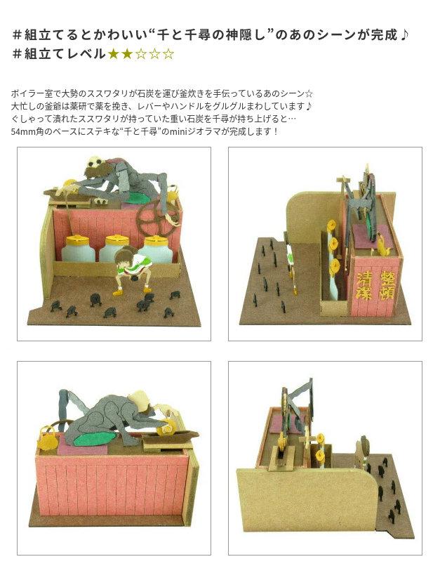 スタジオジブリminiは1辺6cmの箱の上に小さなジオラマが作れるペーパーキットです♪完成すると「千と千尋の神隠し」の世界がコマ送りのようにお楽しみいただけます☆ ※こちらの商品は組立てペーパーキットです。完成品ではございませんのでご注意ください。■商品名 スタジオジブリmini 千と千尋の神隠し 釜爺と千尋■コピーライト © 2001 Studio Ghibli - NDDTM Ghibli - NH■セット内容 レーザーシートA~N(14枚)、ベース(1枚)、組み立て説明書■スケール Non-scale■サイズ W60×D60×H60(106)mm ※内はジオラマを乗せた時の寸法です■対象年齢 12才以上■組立て所要時間 2時間~■組立てレベル ★☆☆☆☆■みにちゅあーとキットとは? ミニチュア制作の経験のない方でも、扱いやすい“紙” 素材で出来たECOペーパーキットです。製作道具はカッターナイフ、ピンセット、接着剤、定規、カラーペンなどがあれば作れますよ~♪