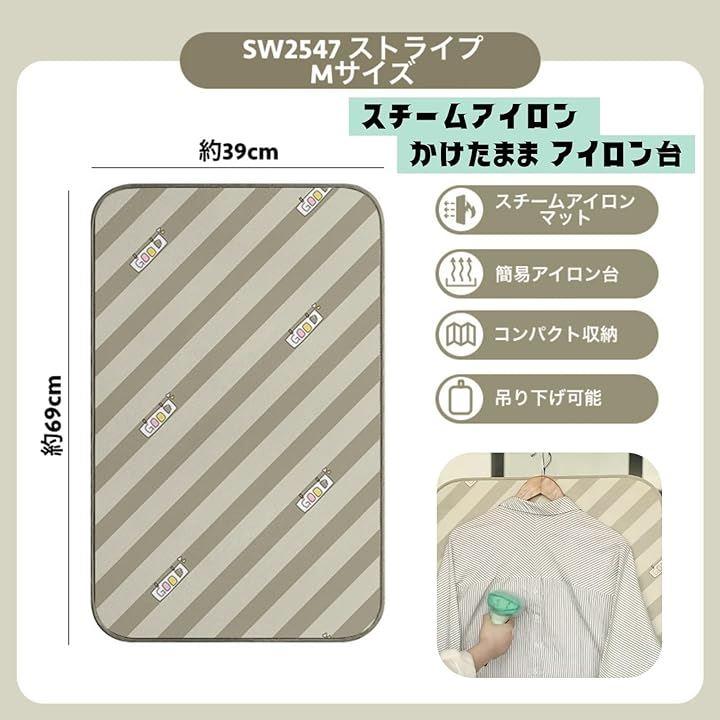<セット内容>ストライプ柄 アイロンマットx1、アイロン仮置きシリコンマットx1 <アイロンマットサイズ>約69x39cm