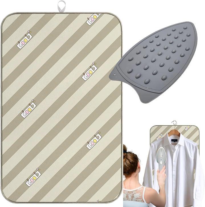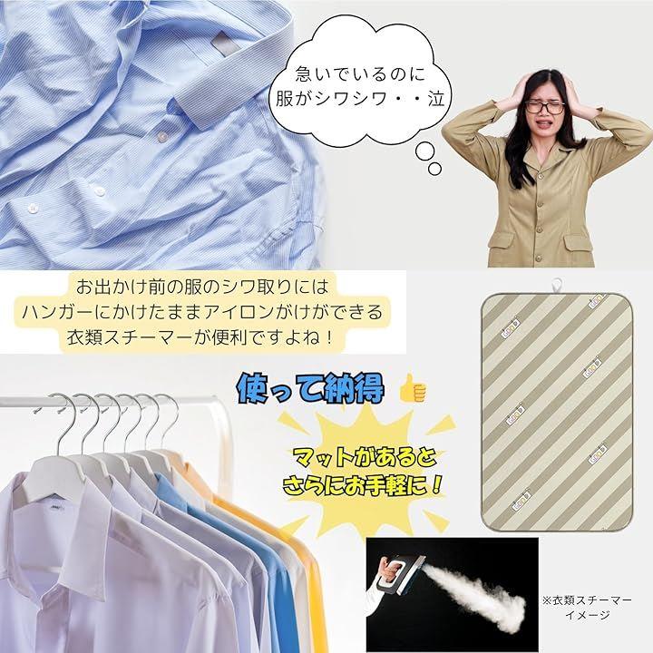 ハンガーにかけたままスチームアイロンをかける時、背面に押し付けてプレスすれば効率が良いと思ったことはありませんか?そんな時に役立つ、アイロンマットです。