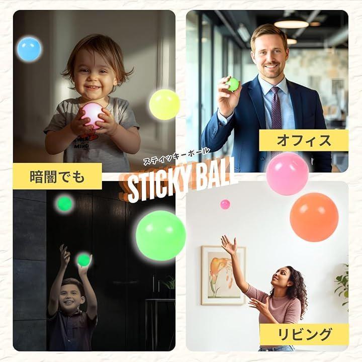 「暗闇で光る魅力的な夜光効果」 カラフルなスティッキーボールは光や太陽光を吸収して暗闇で柔らかく発光します。
