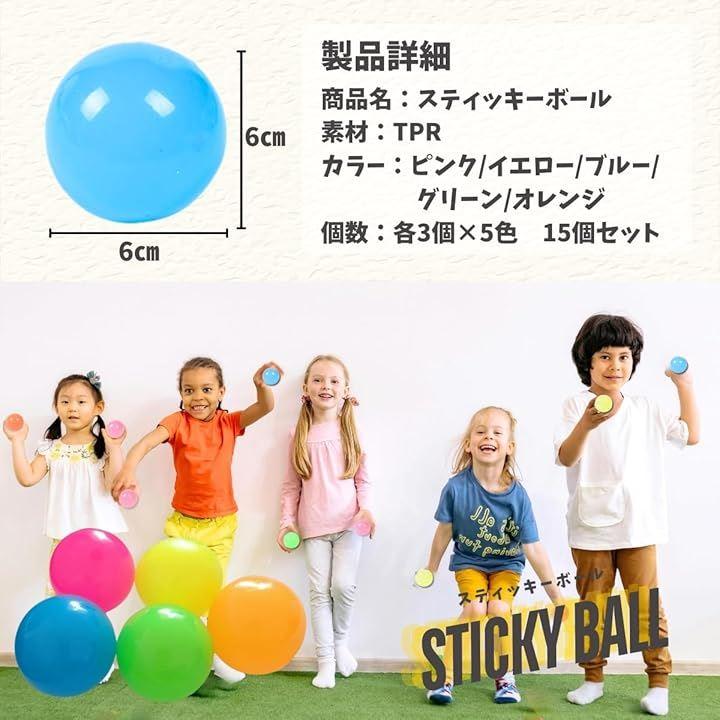 「イベントでの盛り上げグッズにも」 10個セットと15個セットから選べるスティッキーボールは、家庭での遊びはもちろん、リラックス玩具として学校の休み時間やオフィスでの気分転換にも最適です。